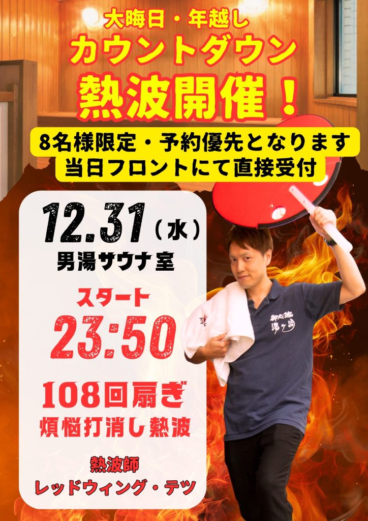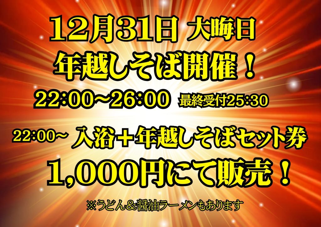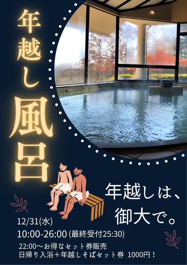 大晦日は26時までの年越し風呂開催!!
